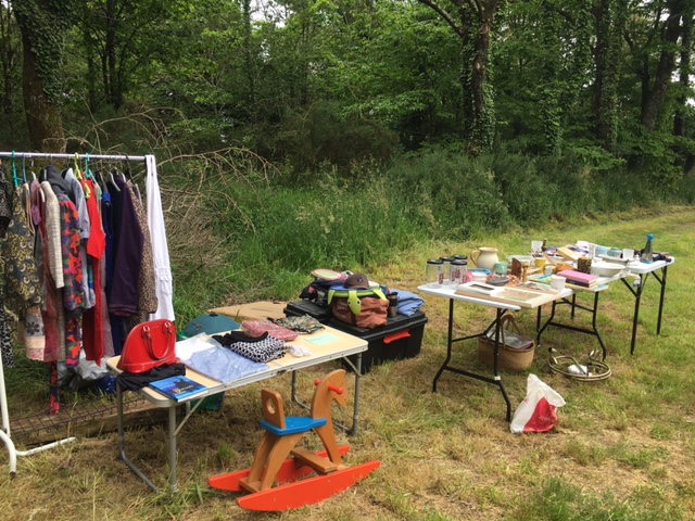 Dès 9h30 le jardin du Sel a commencé à s’animer et les bonimenteurs à affûter leurs arguments pour se débarrasser des divers objets, bibelots, vêtements, livres, tableaux de maître… qu’ils avaient la ferme intention de ne pas ramener chez eux en fin d’après-midi.