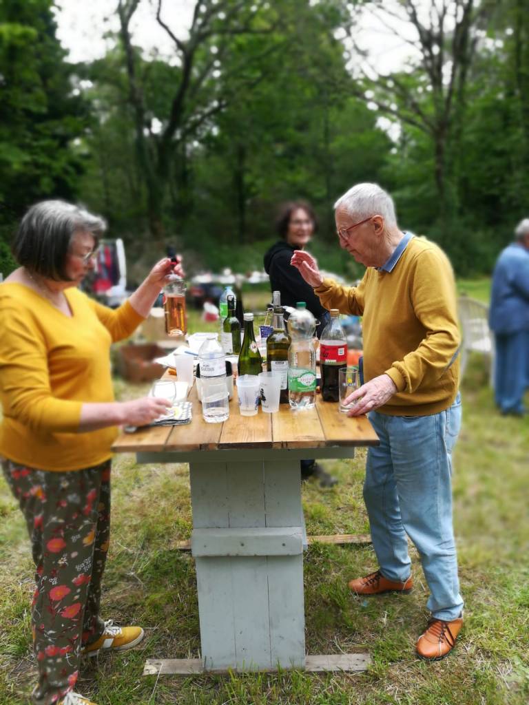 En ce samedi de fin mai où il faisait presque beau, une douzaine d’adhérents s’était prêtée à l’exercice de la gratiféria, une idée initiée par Kristine, consistant en un marché où tout est gratuit. Nos adhérents étaient invités à vider leurs placards, greniers et garages et à proposer leurs « trésors » propres et en bon état à l’ensemble des adhérents dans le cadre idyllique du jardin partagé. Pas de troc, pas de contrepartie, juste des dons désintéressés.