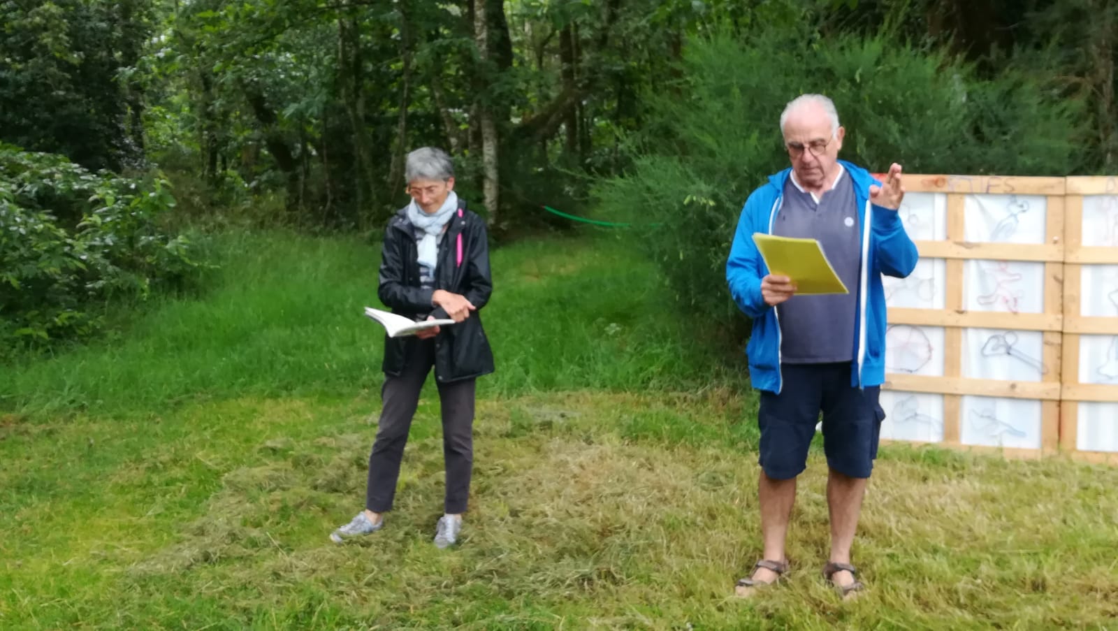 Fin juin, à l’occasion de l’inauguration du Sentier des Artistes, les « Fabuleux Fabulistes » ont rejoué avec plaisir la fable « Le Lièvre et la Tortue » pour illustrer le thème des « Lignes », à la demande du Râteau à plumes. D’autres sélistes avaient également été sollicités à titre individuel pour des lectures à voix haute et une animation musicale, cette dernière ayant dû être annulée à cause d’une météo capricieuse.