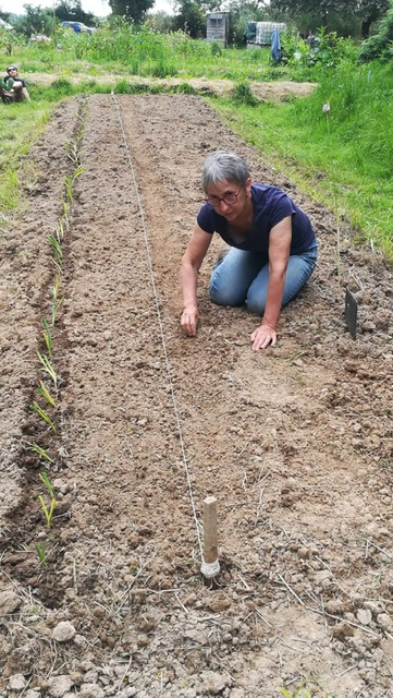 Nos courageux jardiniers ont bravé les éléments pour débroussailler, désherber sans relâche, greliner les buttes, traiter les tomates rescapées à la bouillie bordelaise, arroser les semis, pailler les cultures, éliminer les doryphores, remplir les cuves…