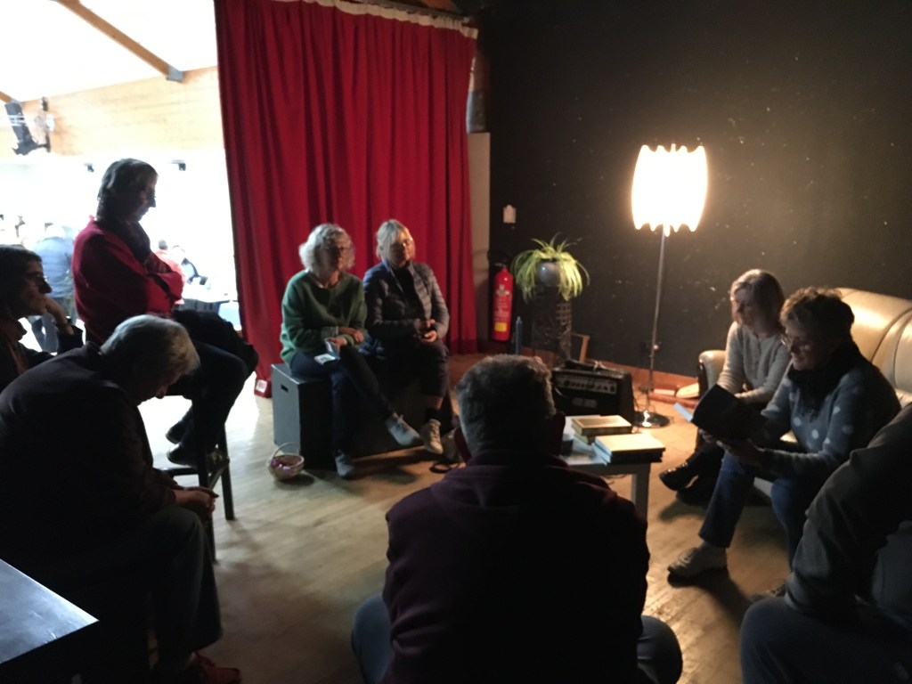 Un petit salon intimiste avait été installé sur la scène afin que les auteurs/trices volontaires puissent avoir un temps d’échange d’une quinzaine de minutes en petit comité avec les visiteurs intéressés.