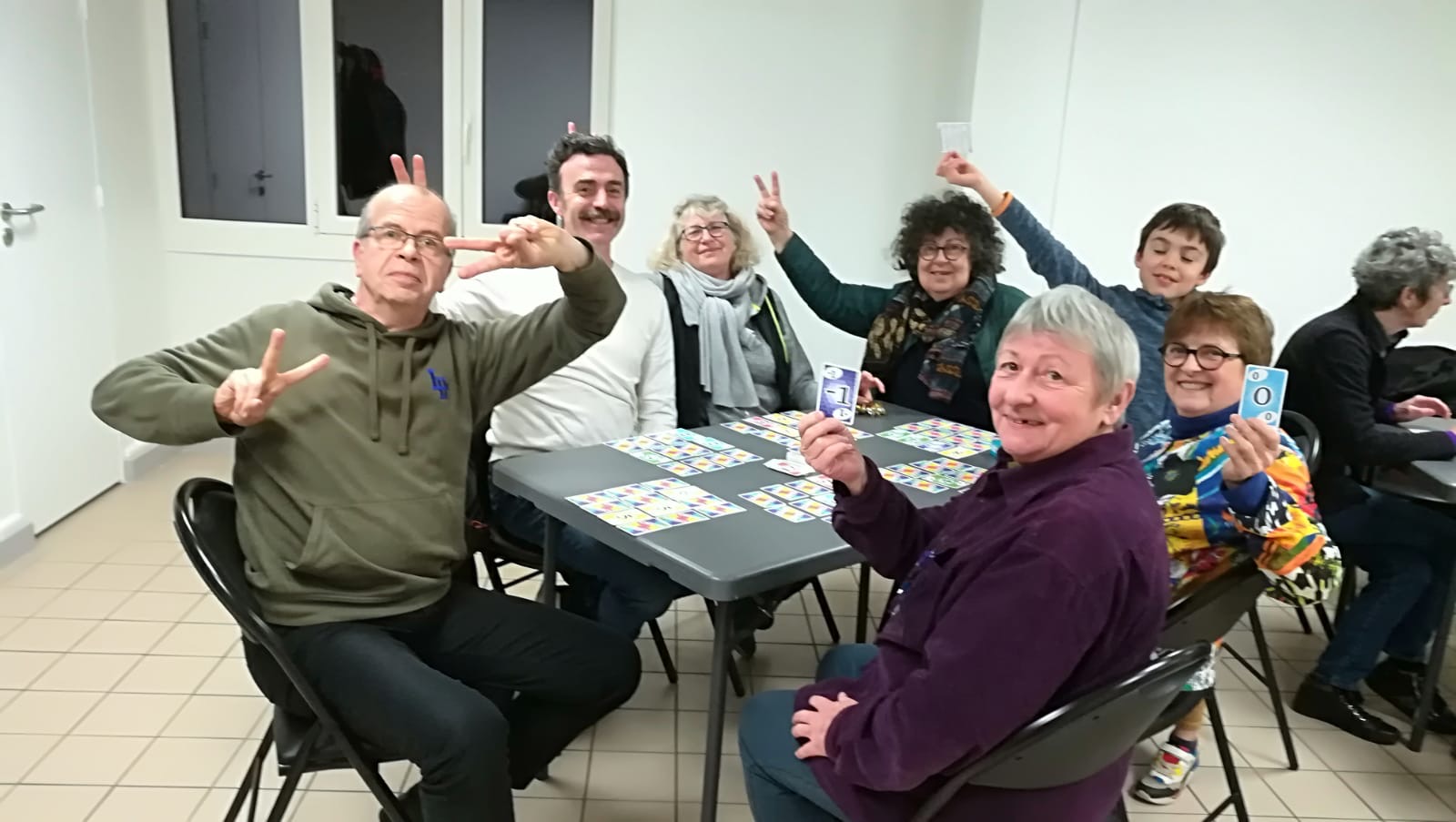 La soirée commence souvent par un jeu qui implique l’ensemble des joueurs en 2 ou 3 équipes, puis dans un second temps, l’assemblée se sépare en 2 ou 3 tables qui s’adonnent à des jeux différents : Time´s Up, Code Names, Master Word, Skyjo, Mascarade, Dixit… sont autant d’occasions de faire travailler nos méninges, d’attraper de bons fous rires et de mieux se connaître.