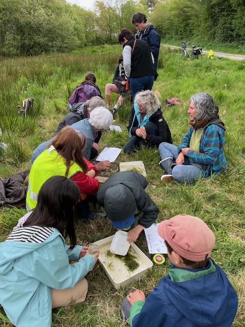 En ce premier lundi des vacances de printemps, nous étions quinze à avoir répondu présents à l’invitation de Mélanie, notre animatrice nature préférée, qui nous avait donné rendez-vous à la mare du Guerny pour observer la vie aquatique.