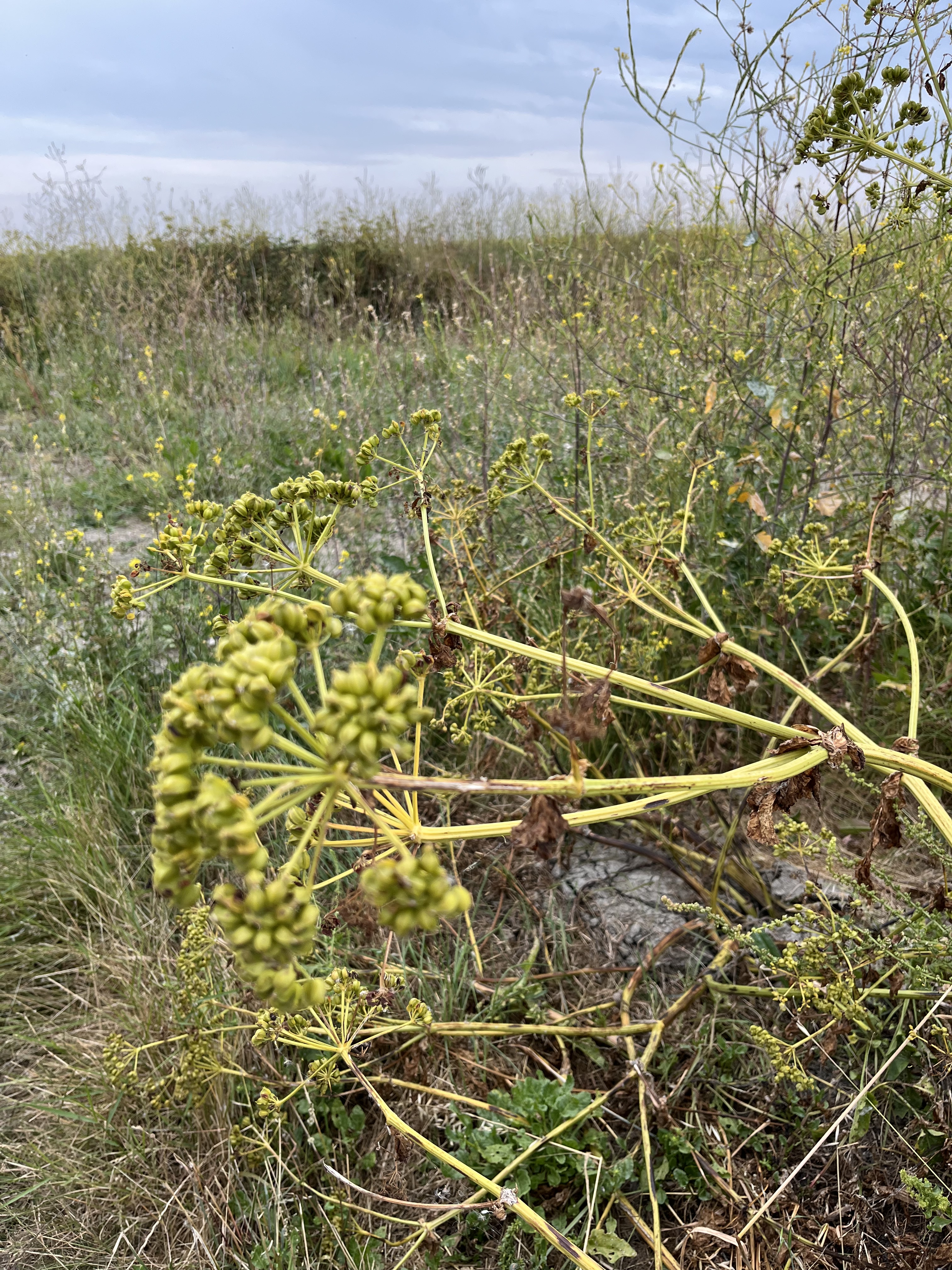 Juliette, en pleine période de travail intensif dans son marais salant, a pris le temps de nous expliquer la fragilité des ponts, ces petits monticules séparant les œillets (bassins) et la nécessité de les reconstruire ou de les consolider très régulièrement. Il convenait donc de marcher avec précaution sur ces fragiles édifices. Grâce à Juliette nous avons également fait connaissance avec le maceron, aussi appelé poivre du saunier, dont les graines ont une saveur poivrée florale et s’utilisent en condiment. Il faudra toutefois revenir pour la récolte car le maceron n’est pas encore à maturité (attendre que les graines deviennent noires comme du poivre).
