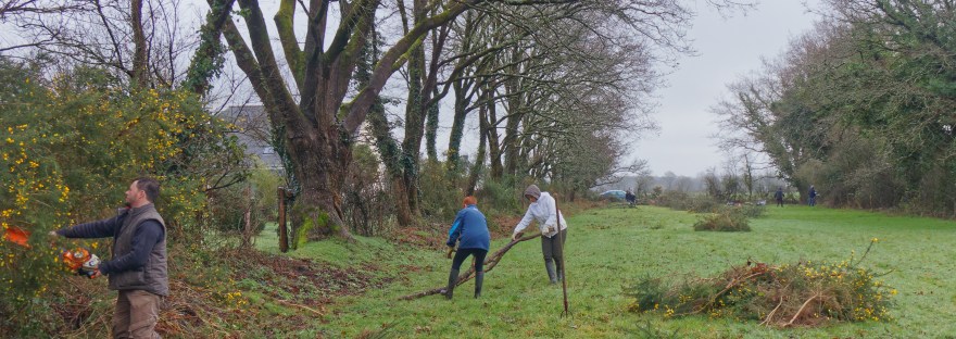 En ce lundi 24 février, quelques adhérents courageux ont bravé le mauvais temps pour attaquer le débroussaillage au jardin partagé. L’espace commence à prendre vie, et bientôt le collectif « jardin » fera part du planning proposé pour continuer les aménagements. Merci à Yves, notre reporter photos.