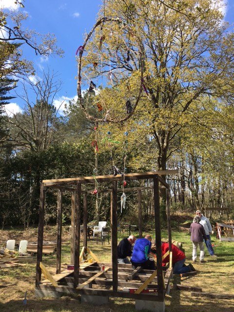Le collectif Paysager et Land-Art n’est pas en reste. Différentes installations initiées par Christine, Sabine et Kristine sont en cours de réalisation : attrape-rêves accrochés dans les arbres, barrières colorées, tunnel de coloquintes, arbres « animés », verres sonores, totem…