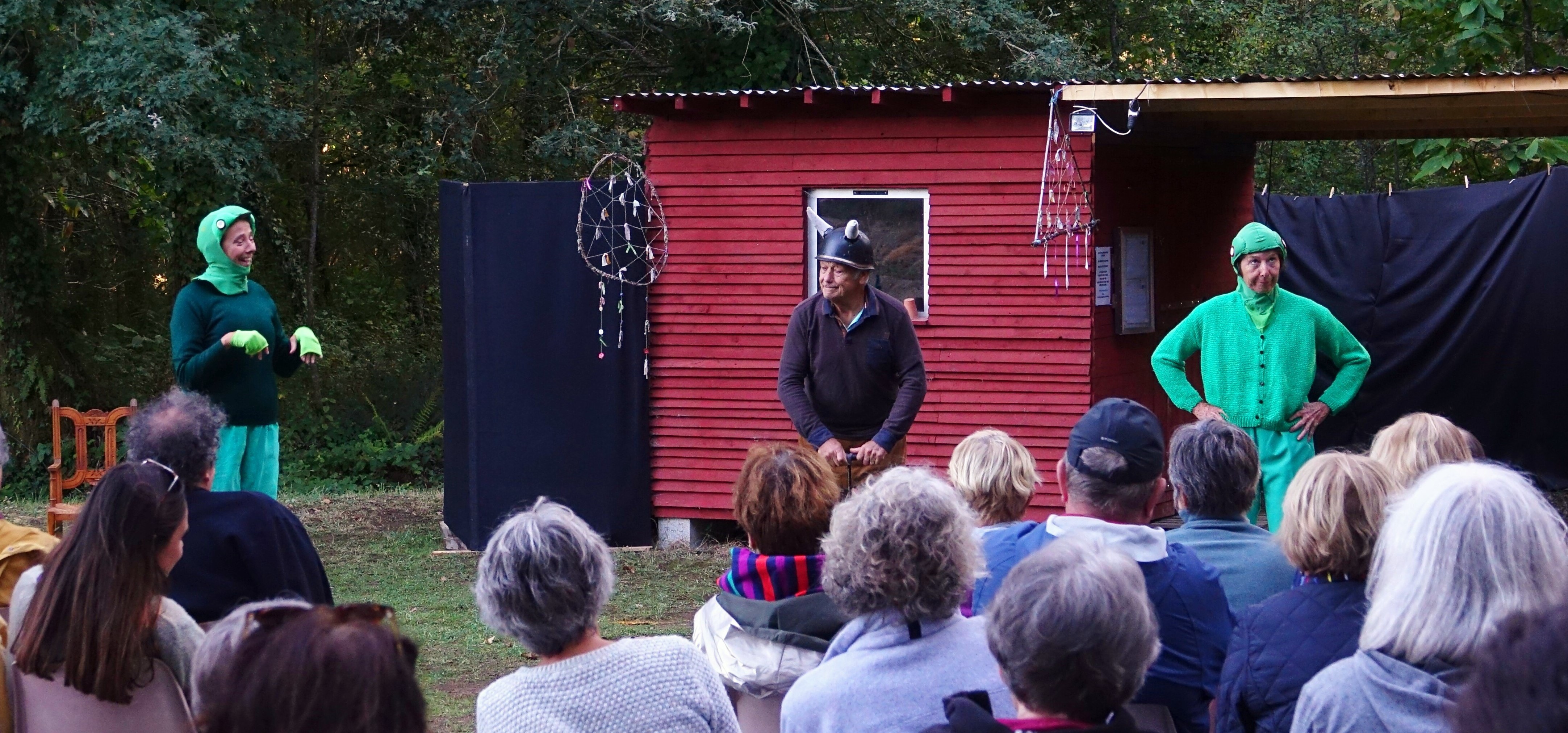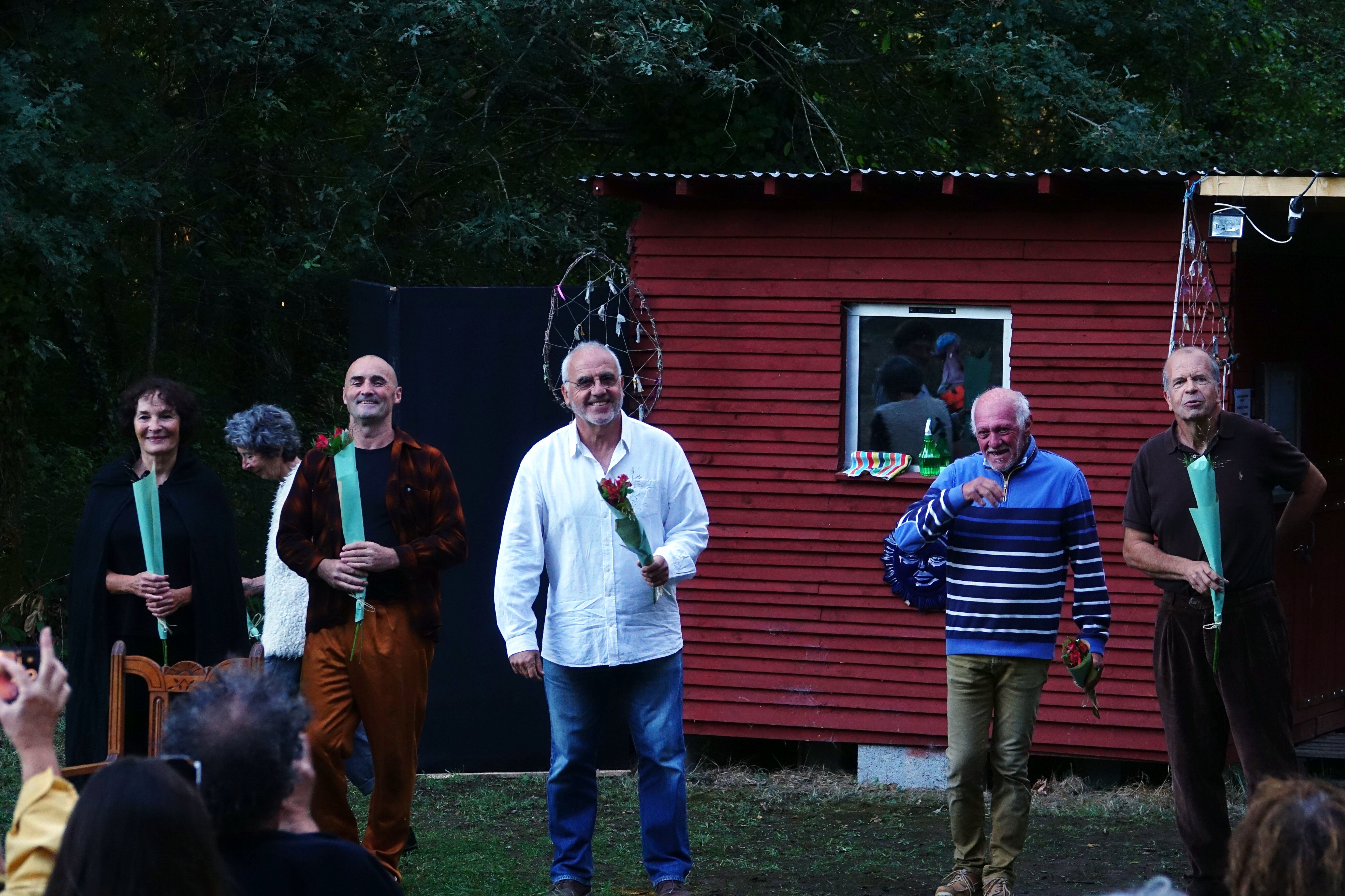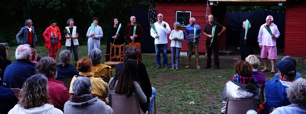 Si l’on en juge par les rires et les applaudissements nourris tout au long de la représentation, on peut dire que le pari a été gagné. Il faut dire que les huit inconscients qui s’étaient lancés dans l’aventure sous la houlette de leur metteur en scène préféré n’ont pas ménagé leurs efforts : répétitions hebdomadaires en salle pendant tout l’hiver en partant des fondamentaux du théâtre (exercices de diction, de concentration, déplacements, transcription des émotions, recherche de son personnage, …), puis apprentissage des textes par cœur et répétitions au jardin partagé pendant tout le printemps et l’été, dans ce décor naturel qui allait leur servir de scène.