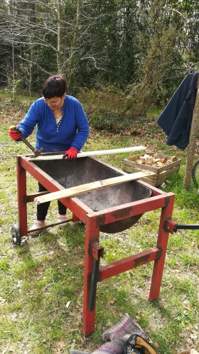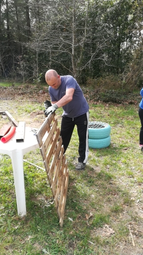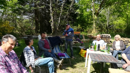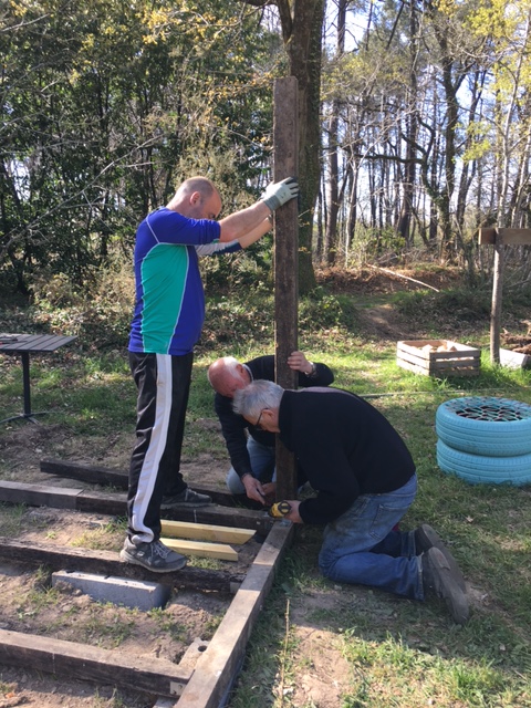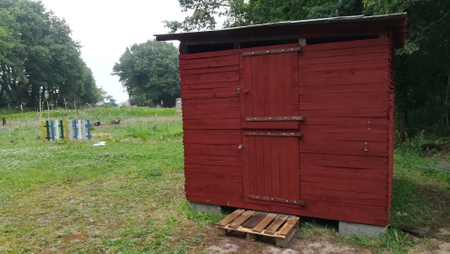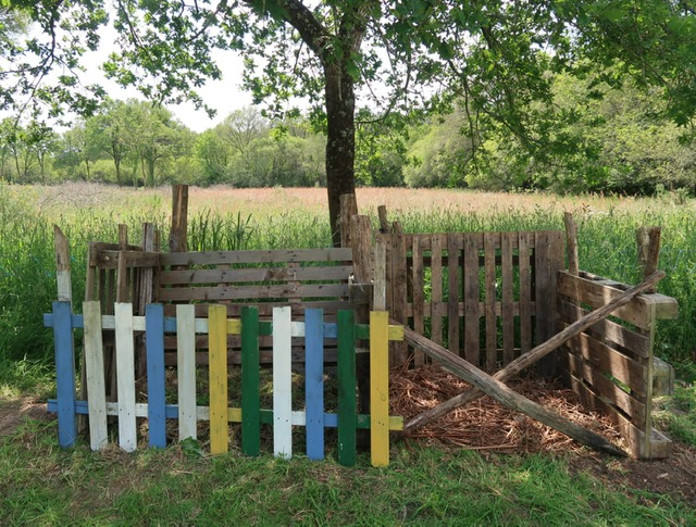 Notre première cabane à outils, construite à partir de matériaux de récupération (piquets de parcs à moules et palettes désossées), est maintenant terminée. Les adhérents n’ont pas compté leurs heures pour concevoir les plans, prospecter les mytiliculteurs, les déchèteries et les commerçants, désosser les palettes et monter pas à pas la structure. Une cabane jumelle devrait être construite à l’automne.